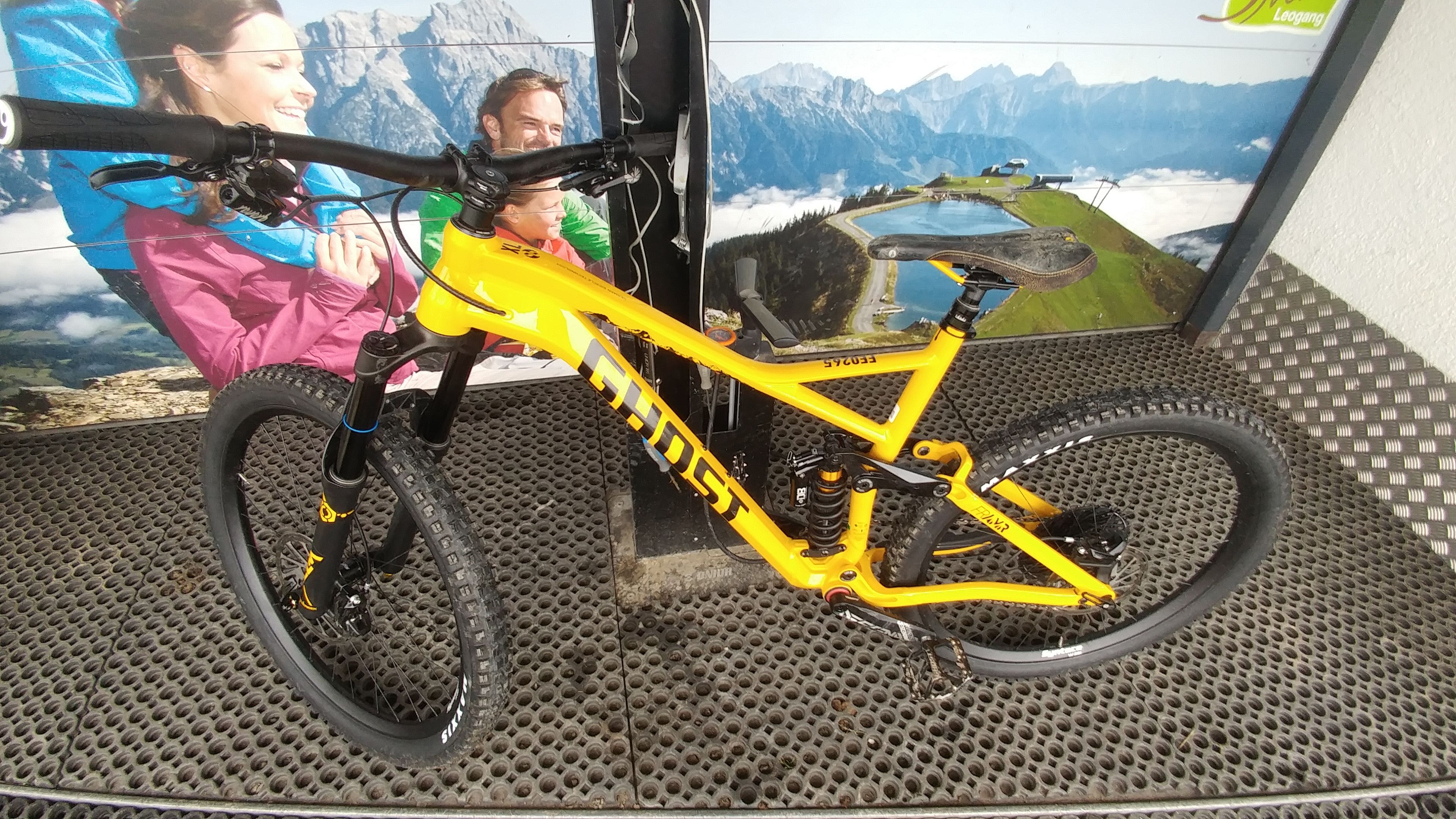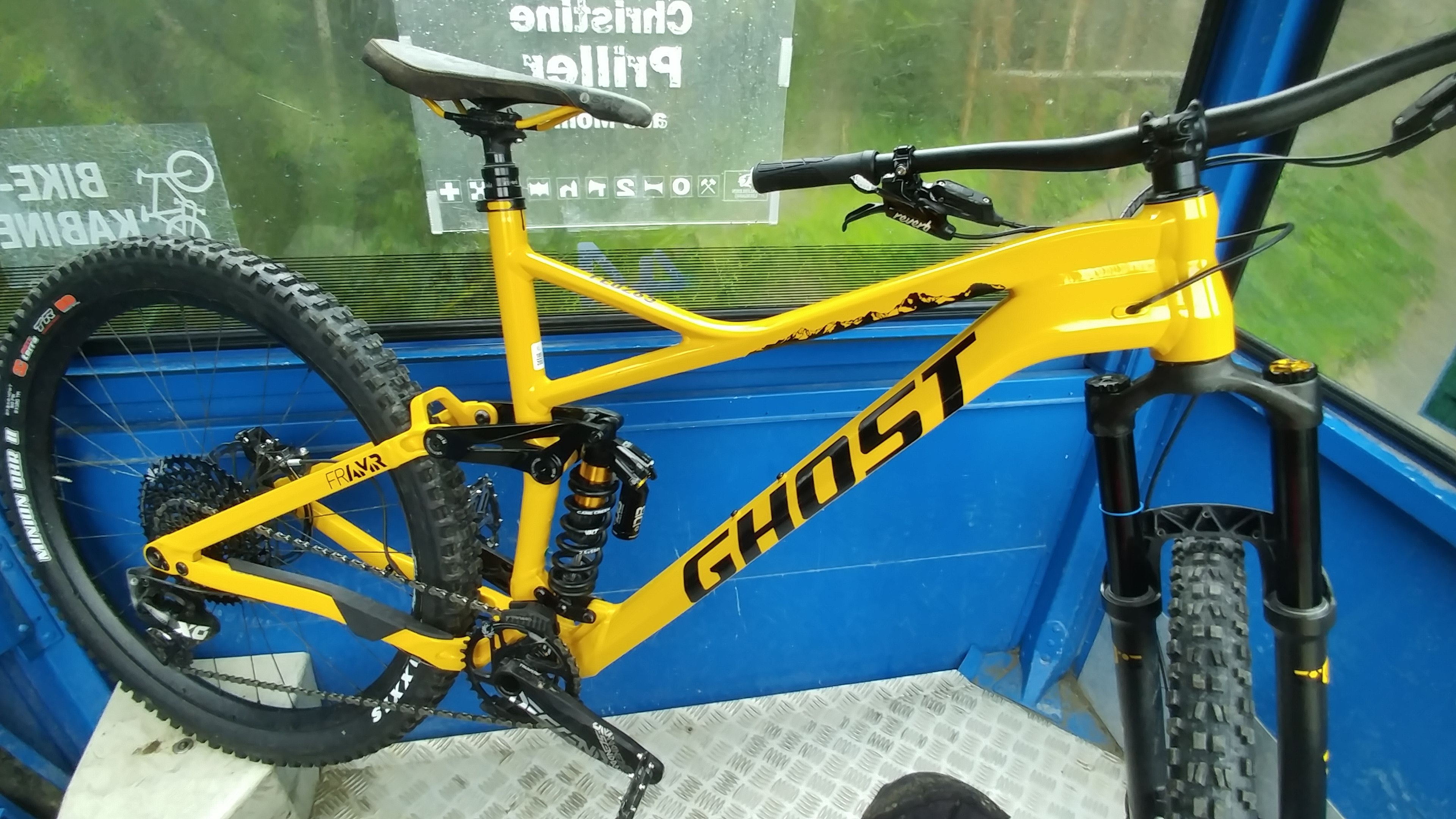 Bei den Eurobike Media Days in Serfaus Fiss Ladis konnten wir eine erste Runde mit dem neuen Ghost FR AMR drehen. Mit dem Lift bergauf zu gondeln ist sicher keine unübliche Übung für ein Bike mit 170 / 165 mm Federweg. Beim Pedallieren haben wir aber dennoch den Eindruck gewonnen, dass sich das FR AMR durchaus bereitwillig fortbewegt, mit zwei Einschränkungen: 1.) Wettrennen bergauf sind allein schon durch Reifen und das vollaktive Fahrwerk keine gute Idee. 2.) Mit 1,21 m Radstand in Größe M ist man einfach auf einem Hackebeil und keinem Skalpel unterwegs.