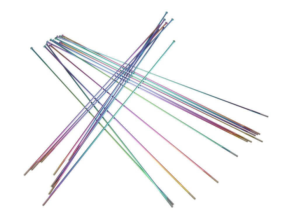 Im Falle der Pillar Spokes Rainbow Farbe werden die Speicheb titanbeschichtet und anschließend anodisiert. Das Beschichten kosten im Endeffekt nochmal genau so viel wie die Speiche selbst, sieht aber auch echt verdammt gut aus.