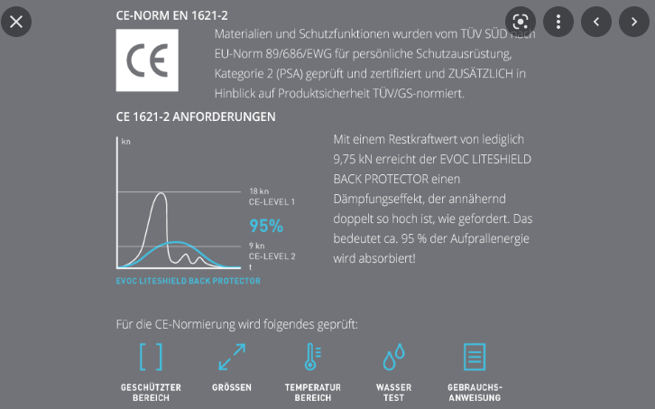 - Protektoren-Zertifizierung EN 1621-2 Level 1