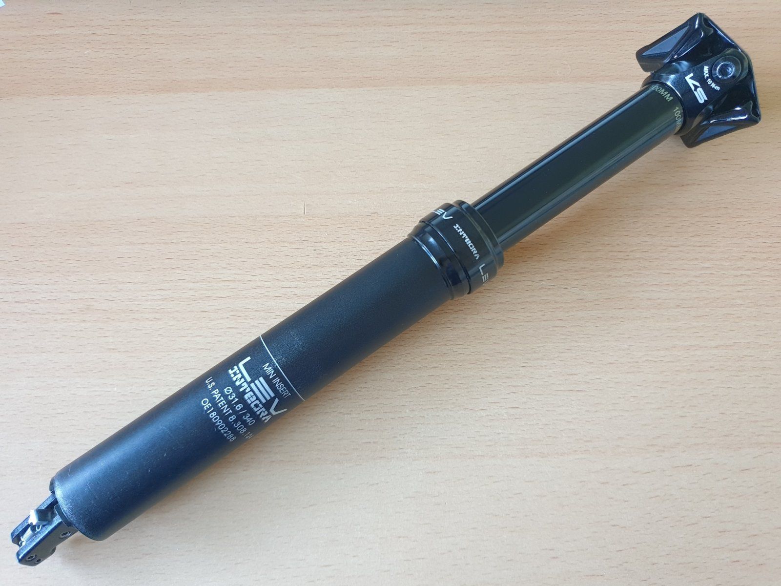 Auffällig ist, dass oben am Rohr die 100mm Verstellweg beschriftet sind.